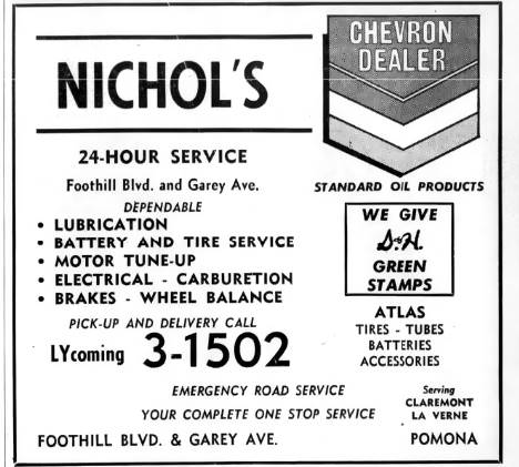 Nichol's Chevron ad, 1959 phone book. Source. Click image to enlarge