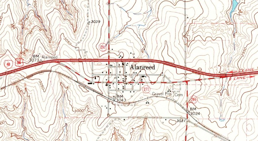 The Postal highway linking Oklahoma City and Amarillo was Alanreed's Main Street and that led to U.S. Route 66 passing through the town.