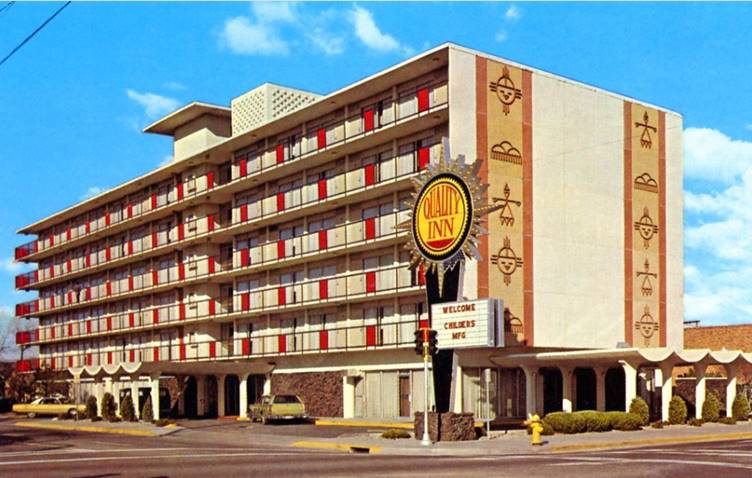 Quality Inn motel in a vintage postcard. Albuquerque NM. Source. Click to enlarge