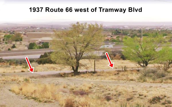 This area at Tramway and Central Ave. was empty space. There were motels along Route 66 west of this point. The first signs of an urban area appeared at Wyoming Blvd. three miles west.