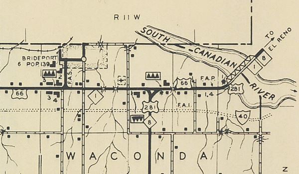 Look for Bridgeport on our Oklahoma Route 66 Map, with the complete alignment and all the towns along it.