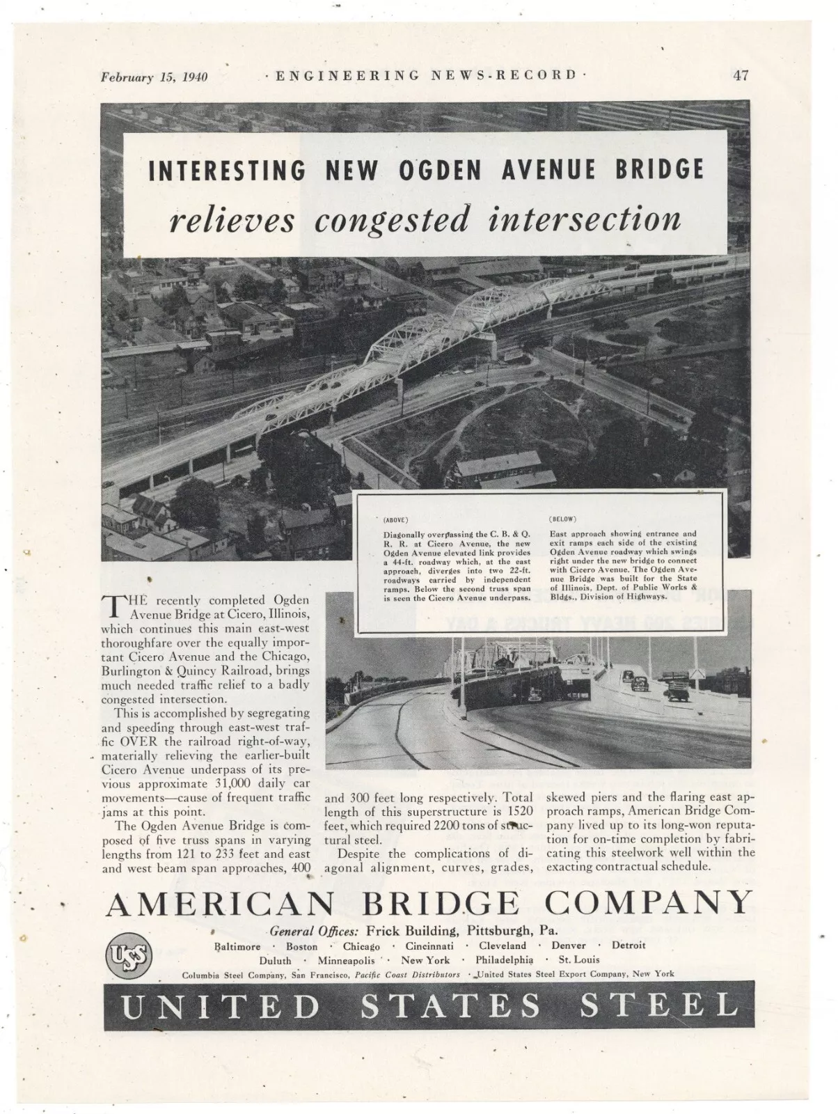 Its eastern access had two independent ramps on each side of Ogden Ave, which continued straight to connect with Cicero Ave.