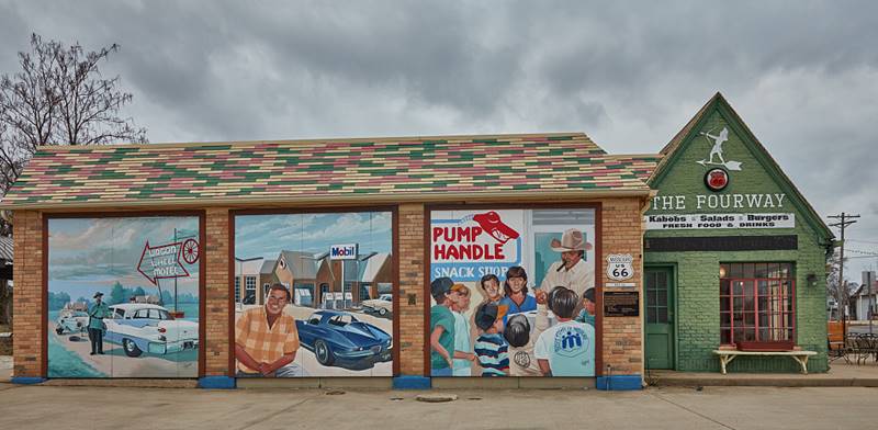 Return to Route 66 turn right and to your right is another mural (Truman's).