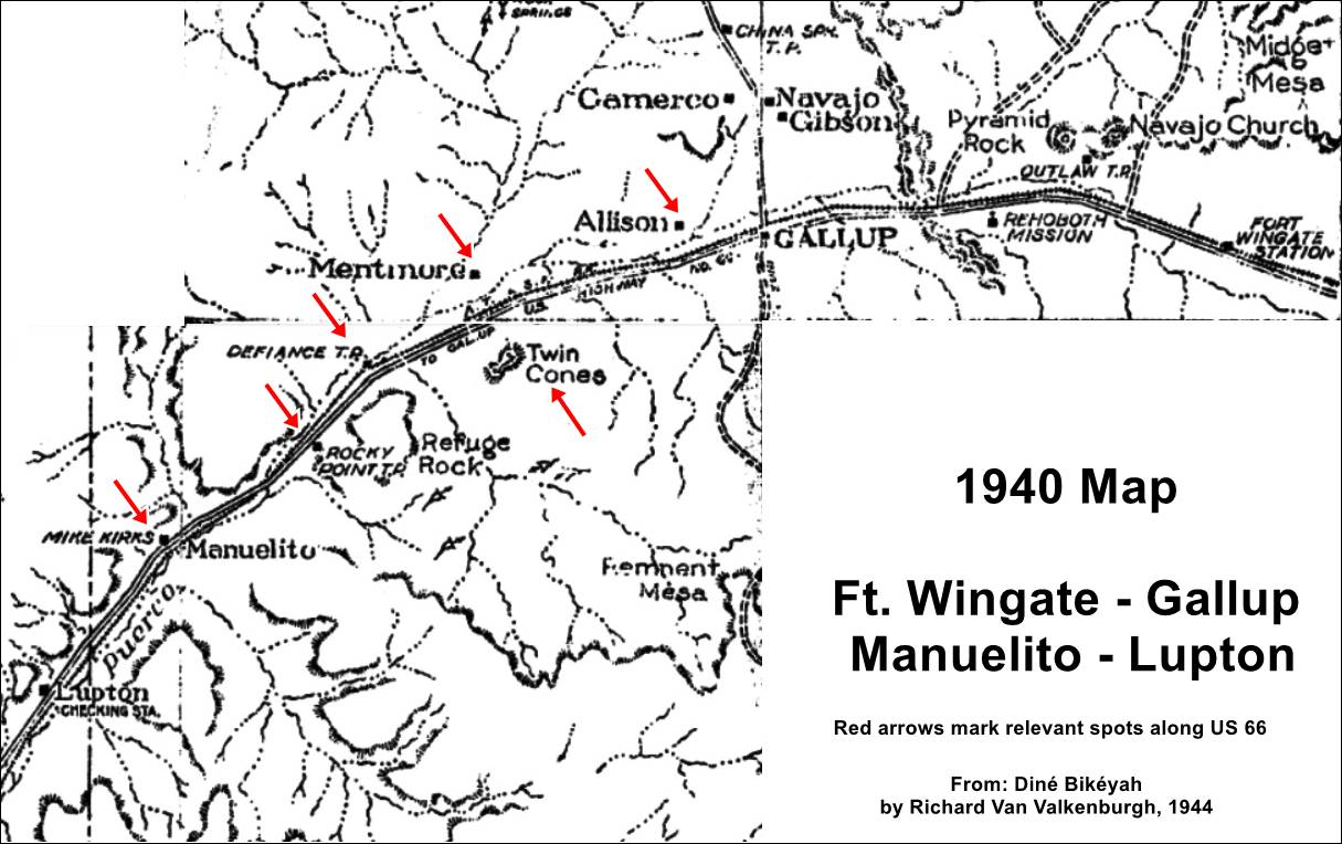 In his 1946 Guide Book to Route 66, DeVere Rittenhouse mentions the "Twin Butte Nazarene Navajo Mission" and a "Gas station nearby" 6 miles west of Gallup.