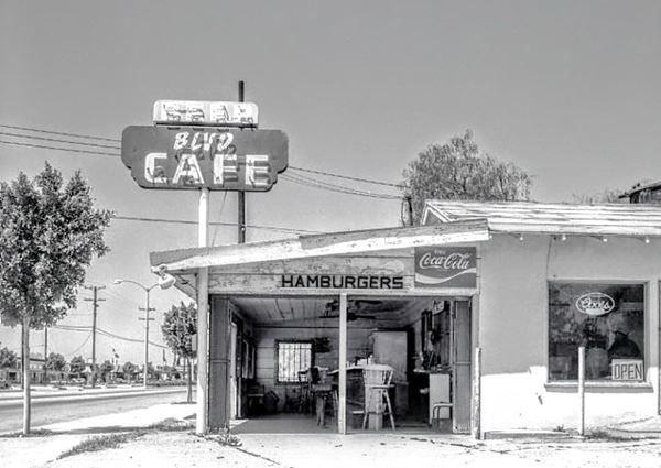 Opened in 1946, closed in 1989. It was owned by Susie and Tommy Halburian. It began as an orange juice and burger stand and grew into a small café Its sign read BLVD as it couldn't fit the whole word "Boulevard" into it. It was eventually seized by the city and redeveloped. It was located to your right, just west of Buena Vista, on the left side of the modern Wells Fargo Bank on the 1100s block of Huntington.