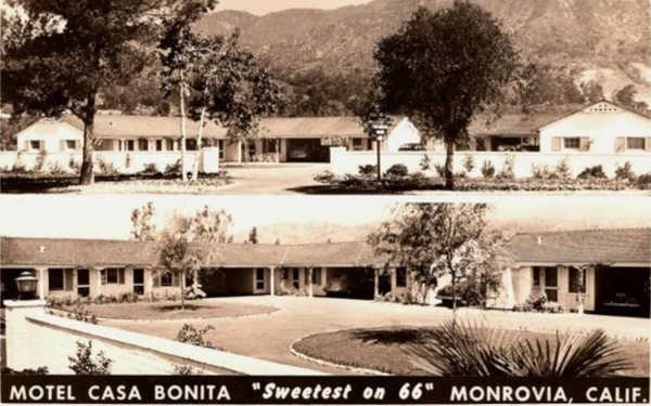 Its postcard states "Conveniently located in the foothills of the Sierra Madra (sic) Mountains on Highway 66. Ten minutes drive to the Santa Anita Race Track, and the Pasadena Rose Bowl. Owned and operated by Abe and Mary Doornbos."