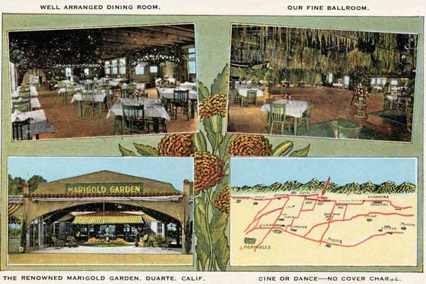 The garage was followed by a Service Station and the Marigold Garden Cafe at 2039 Huntington. It offered "Dancing Every Saturday Night... Dining, Dancing, Cocktails Two Miles East of Monrovia."