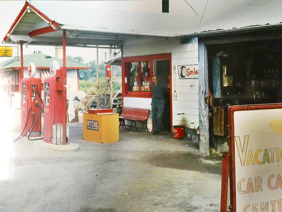 Ths place later became a restaurant and eventually closed. See its 1965 aerial view (click to enlarge). Below is a 1960s advertisement in which we can see it also offered Food. Notice the gas station's upward slanting roof.