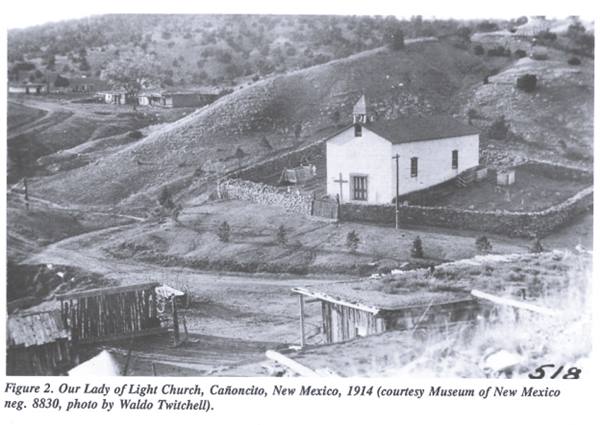 1914 view, Our Lady of Light, Canyoncito. Source. Click to enlarge