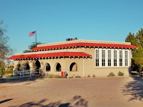Ahed, just west of the school is The Mojave Desert Archives Library. It is housed in a building that is a replica of the Goffs Santa Fe Railway Depot, built in 1902 and demolished in 1956.