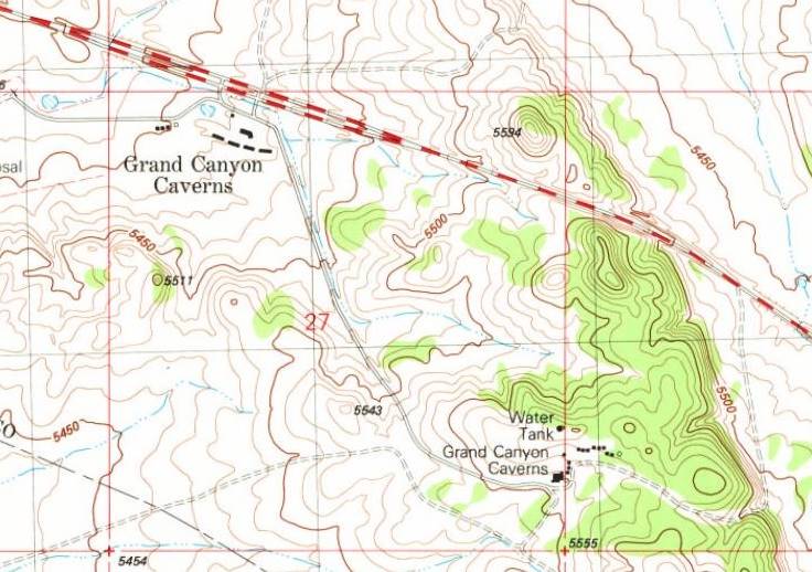 The thumbnail map below published in 1935 shows the highway between Williams and Kingman. Notice that the Grand Canyon Caverns (GCC) don't appear on this map (they are roughly where "Cedar Grove" is located).