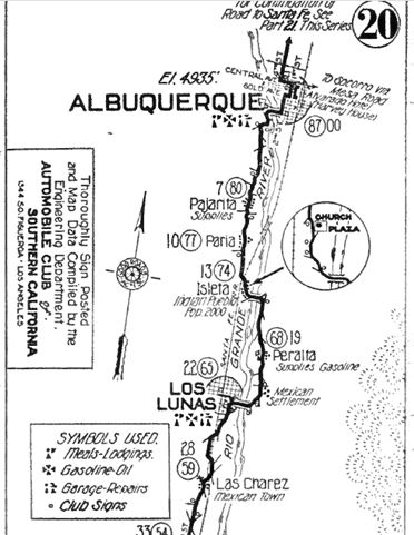 North of Los Lunas, the 1926 alignment of US66 crossed the river to its eastern side at Isleta and went south, going through Peralta. South of this point it crossed the Rio Grande again into Los Lunas.