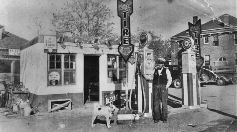 Aguirre Service Station with its owner and dog Fifi. Source