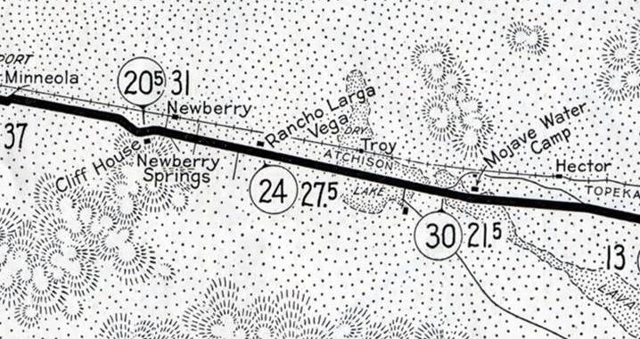 1934 map of Route 66 in Newberry Spgs. Source. Click to enlarge