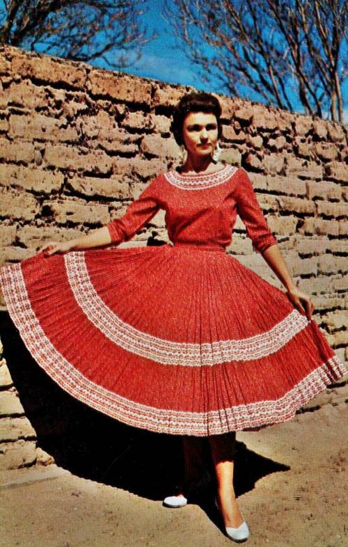 1950s Western Fiesta Dress, Justin's Shop postcard. Source