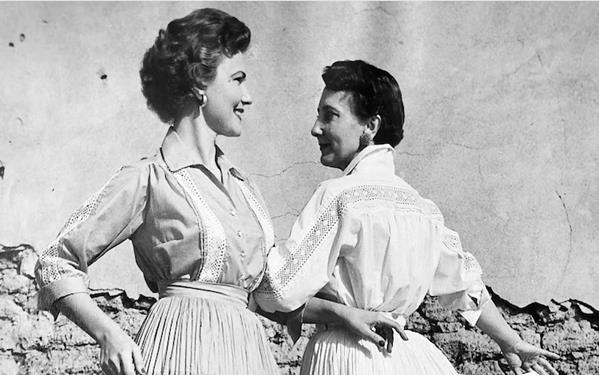 Justin and Odessa added fashionable fiesta style dresses designed by Odessa to their regular curio shop items and renamed the trading post "Justin's Western Shop." They employed local Navajo women to cut and sew the garments and as business flourished, they opened another shop in the Historic Old Town district in Albuquerque. Their marketing efforts included postcards with the Western-style clothes modelled by Odessa and Justin themselves! Below are some examples: