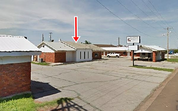 It was located on the south side of Route 66 northeast of Sayre between Wade and N. Watts St. It was still there in 2008, but the building was demolished in 2013 to make way for "progress", another icon of Route 66 gone forever.