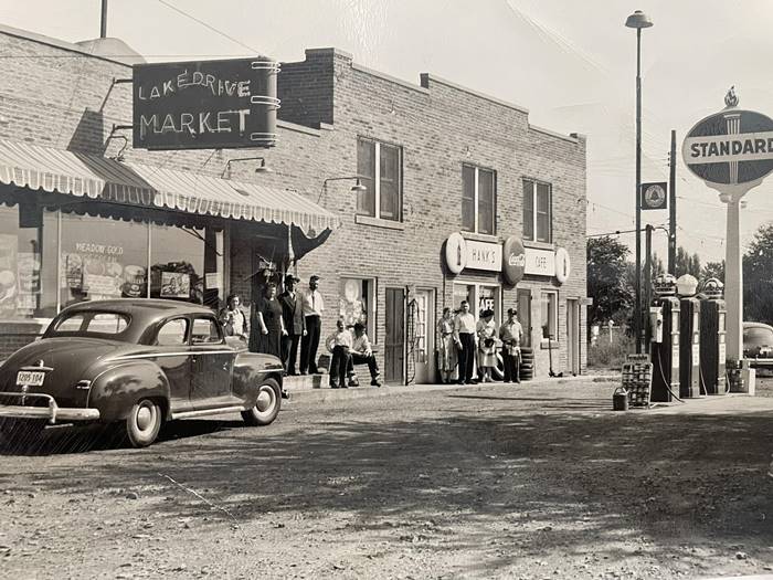 garages: Uptown, Thomas, Motor Inn, Midtown... main hotels include: Abraham Lincoln, Leland, St. Nicholas, and Illinois. Courts include: Highway Hotel Ct., Bedini's Lakeview Cabins, Johnny & Janey Camp, Ahrenkiel Service Station Camp, Capitol Tourist Camp, Moderne CT., Poland's Modern Ctgs., and Sabattini's Cabins. A good cafe is Maldaner’s. Rittenhouse (1946)