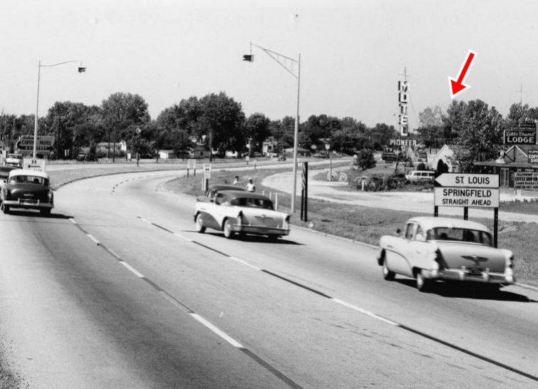 It had a series of buildings starting with a semi-circular group of units on the north side (still standing), and the main building and restaurant, and pools to the south (also still standing). You can see it in this 1966 aerial photograph looking soutwards. When I-55 was built and no Exit provided for the motel, it closed.