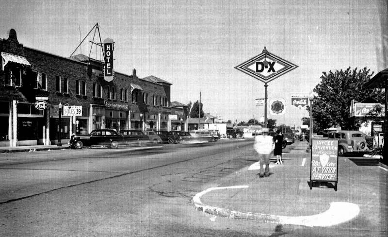 Below is another view looking west, notice the D-X gas station to the right. This is the same view nowadays.