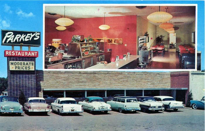 Across from the hotel, at 2615 E 11th St. was Borden's. Leroy and Richard Borden opened their first eating spot in Tulsa in 1935. They grew it into several locations across town. The one on 11th St. offered "Broiled choice steaks. French fried shrimp, fried chicken or dinners served with "truly delicious coffee" that will highlight any meal." They gradually closed, the last burned in 1985. There is a marker at this site on Route 66.