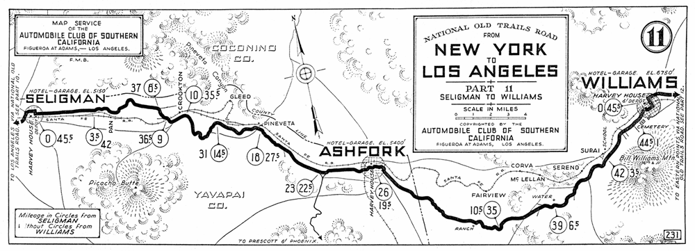 The National Old Trails Highway built in the early 1910s was originally planned through Phoenix, but the local authorities managed to have it routed from Needles through Williams and then onwards to Flagstaff. It finally linked up with the Ozark Trail in Romeroville, New Mexico.