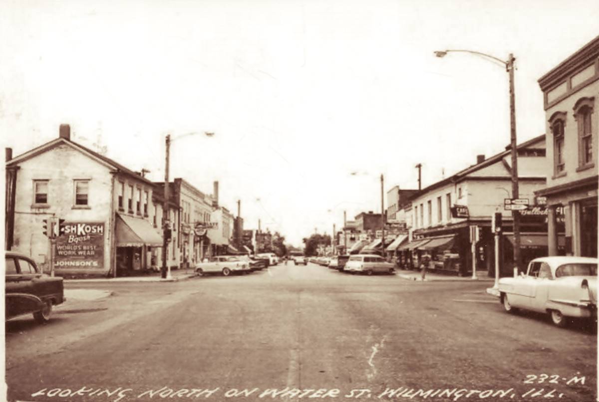 Looking north along Water St. at its intersection with Route 66 in the 1950s.